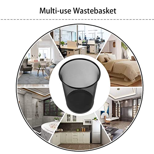 DIVCHI Round Trash Can Bin - 2 Pack Black Non-Slip Mesh Bins Waste Paper Bin Sturdy Metal Bin Indoor Waste Bin for Home Bedroom Office Bathroom Living Room & Kitchen (Black)