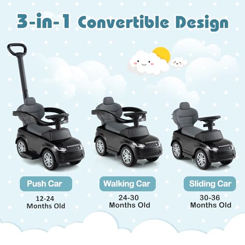 COSTWAY 3 in 1 Ride on Push Car, Licensed Land Rover Discovery Toddler Sliding Car with Steering Wheel, Horn, Storage Compartment, Foot to Floor Slider for Boys Girls (Black)