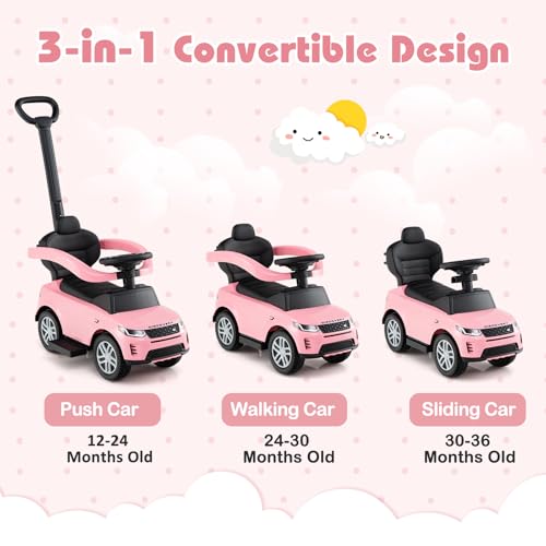 COSTWAY 3 in 1 Ride on Push Car, Licensed Land Rover Discovery Toddler Sliding Car with Steering Wheel, Horn, Storage Compartment, Foot to Floor Slider for Boys Girls (Pink)