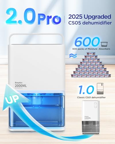 EasyAcc® Dehumidifiers for Home, 2000ml Dehumidifier Pro - 500-650ml/Day-3 Modes Speeds/Ultra Quiet/Auto Defrost 7 Colour LED Light Auto Shut Off - Ideal for Bedroom RV Car Kitchen Garage Damp White