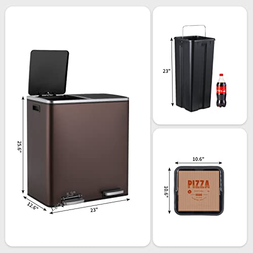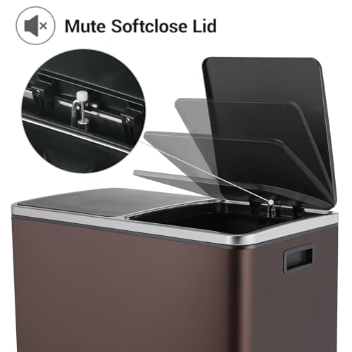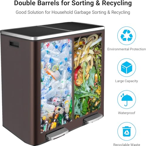LIFERUN Rubbish Bin 2 pcs Compartments, 60 L (2 x 30 Litres) Kitchen Waste Separation System, Soft-Close Metal Pedal Bin Large Waste Bin with Lid, Waste Separation, Rectangular