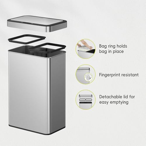 EKO Econova 70L Sensor Recycling Bin, Dual Compartment 2×35L Stainless Steel Automatic Kitchen Bin with Soft-Close Lid, Fingerprint-Resistant, Matt Metallic