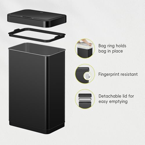 EKO Mirage-T 50L Sensor Bin, Stainless Steel Automatic Kitchen Bin, Rectangular Electric Waste Bin with Soft-Close Lid, Fingerprint-Resistant, Matt Black