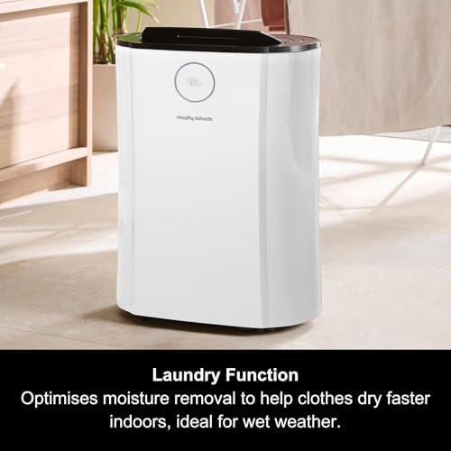 Morphy Richards PureFresh 12L/Day Dehumidifier, 24m2 Coverage, Laundry Mode, Extra Long 2m Cord, HEPA Carbon Filter, Low Noise, Premium Air Flow, Touch Control, Smart Function, Defrost, UV/Ion, 185w