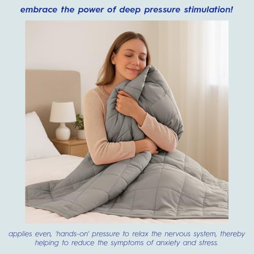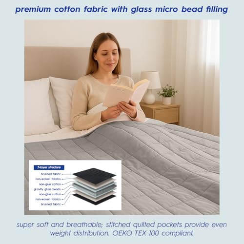 Harbour Housewares Weighted Blanket 8kg with Storage Bag – 150x200cm Grey Weight Blanket for Anxiety, Stress Relief & Deep Sleep – Soft Fabric Calming Throw with Glass Bead Filling