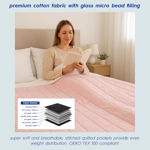 Harbour Housewares Weighted Blanket 4kg with Storage Bag – 125x150cm Pink Weight Blanket for Anxiety, Stress Relief & Deep Sleep – Soft Fabric Calming Throw with Glass Bead Filling