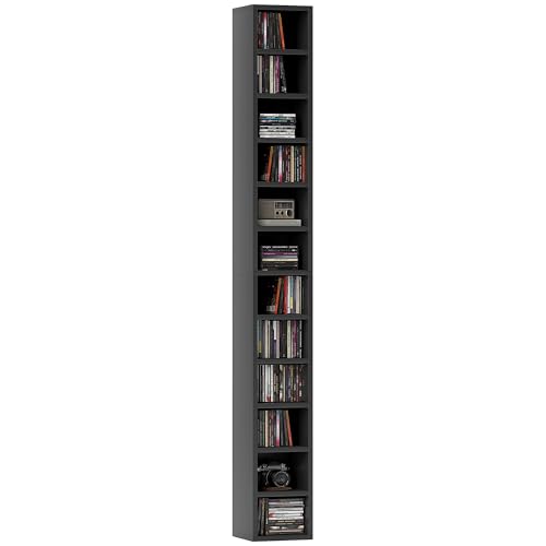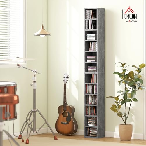HOMCOM 204 CD Storage Tower, Tall Bookcase Bookshelf with 12 Cubes in Grey Grey