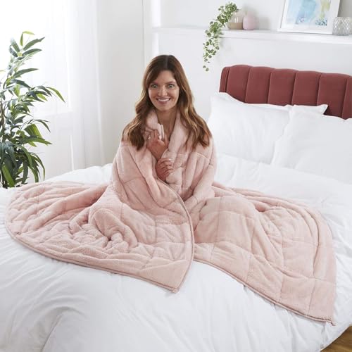 TEDDY FLEECE Weighted Blanket for Adults Soft Sherpa Throw Sleep Therapy Autism Sensory Anxiety Stress Relief Insomnia Sleeping Aid ( Blush Pink, King Size - 150cm x 200cm - 10kg (22lb))